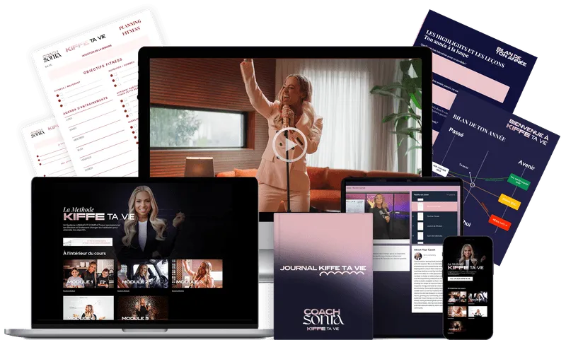 Tu auras accès immédiatement à 5 modules complets de 27 vidéos + un workbook de 100 pages + une communauté VIP + un zoom mensuel avec Sonia + des experts invités + 5 bonus exclusifs.